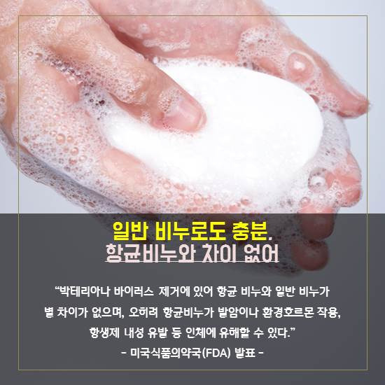 항균 비누와 일반 비누가 별 차이가 없으며,